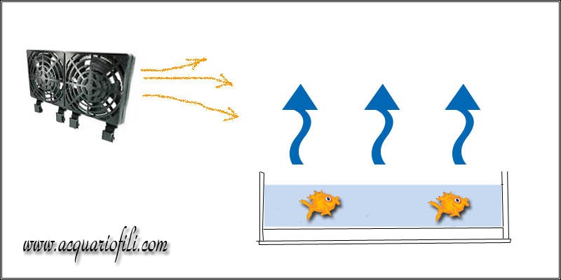 A questo punto volevo far notare che l’evaporazione è meno evidente nelle acqua ricche di sali come per esempio negli acquari di acqua salata ,di conseguenza il raffreddamento tramite apertura coperchio o ventoline diventa molto più difficoltoso e si ha necessità di ricorrere a  refrigeranti con costi veramente elevati.